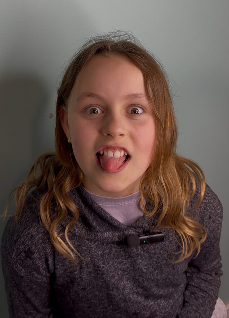 Raya describes her day as “boring, obnoxious, and… sometimes fun,” she expresses the mix of routine and excitement in elementary school and reflects on the multiple dynamics of her everyday life. Raya describes herself as a kind, tidy, driven student who mediates the drama in her friend group. She is confident and mature for her age.